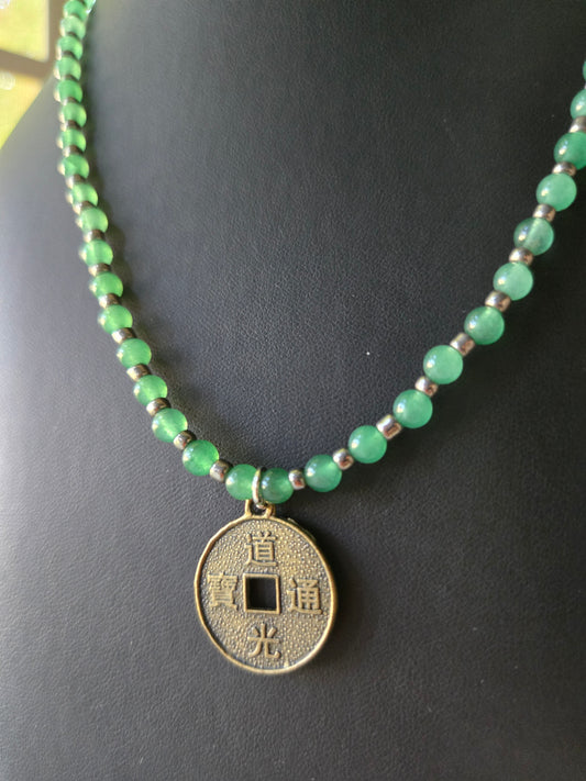 Emerald Eclipse Necklace — Aventurine & Lava Stone with Gold Bloom Accent