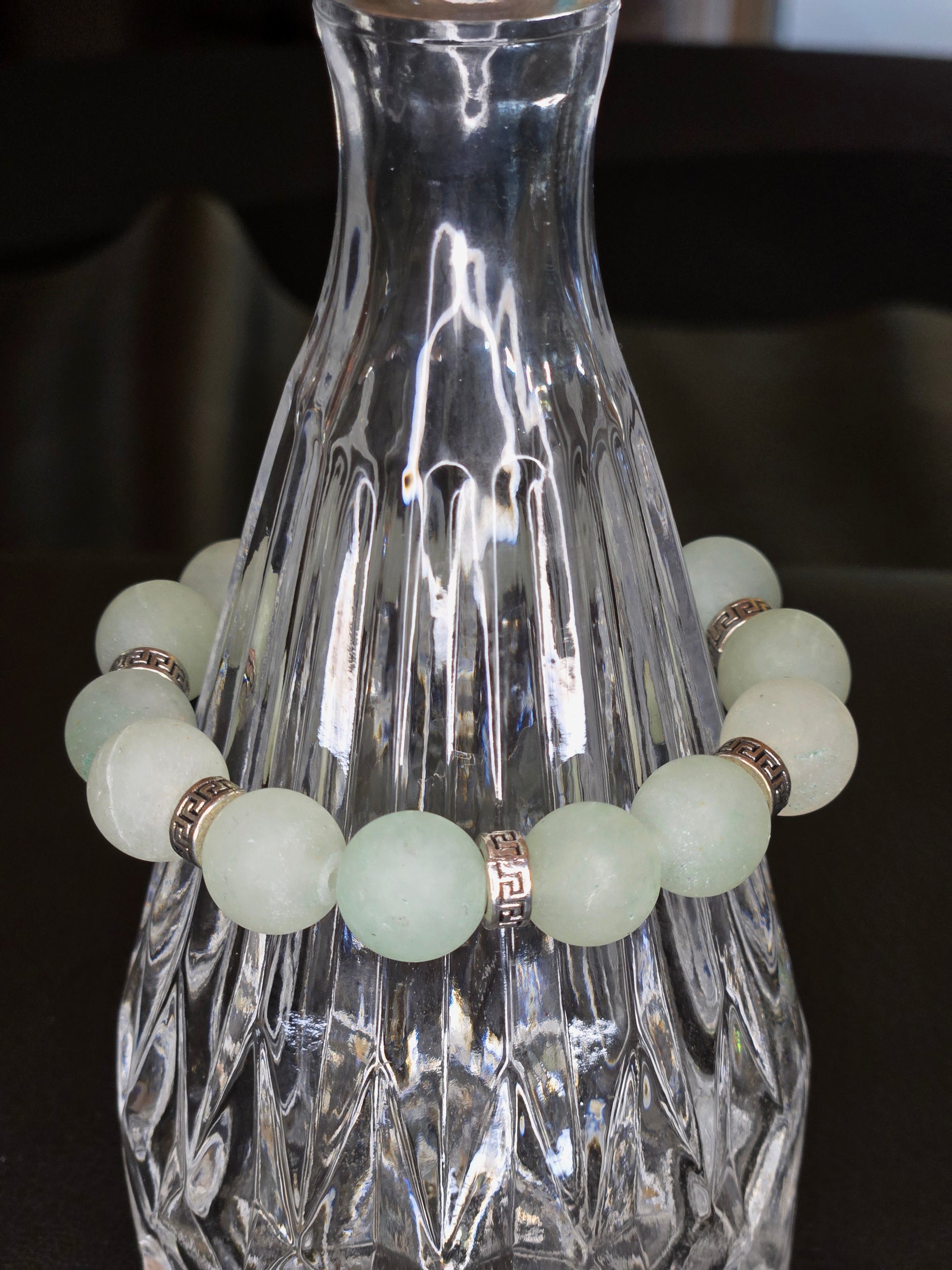 Serene and grounding, the Celadon Dream Aventurine Bracelet captures the tranquil beauty of natural green aventurine — known as the stone of opportunity and renewal. Each frosted bead glows softly like sea glass in morning light, accented by antique silver spacers etched with timeless geometric detail.