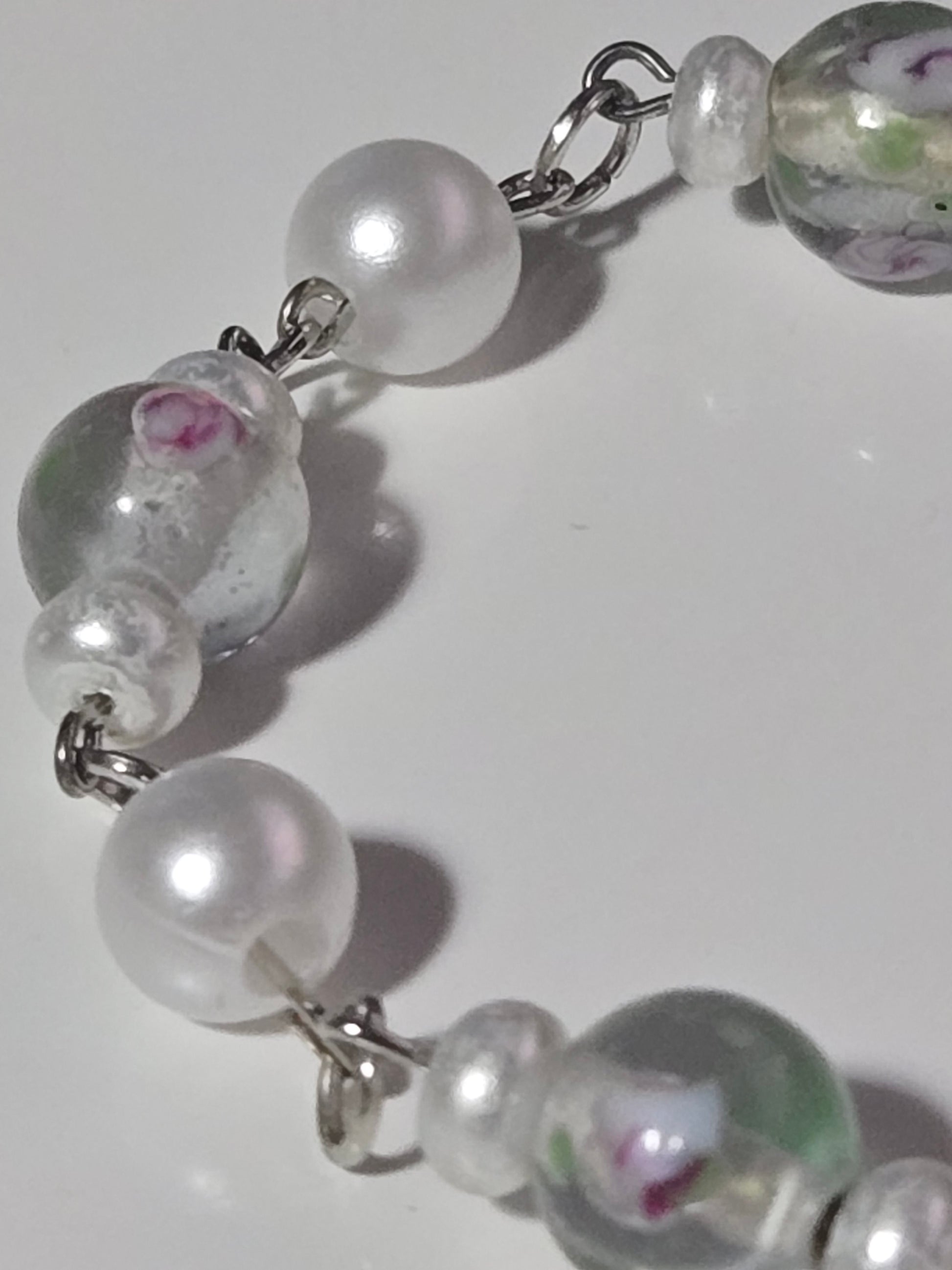 - Handmade with glass pearl beads and floral lampwork glass beads