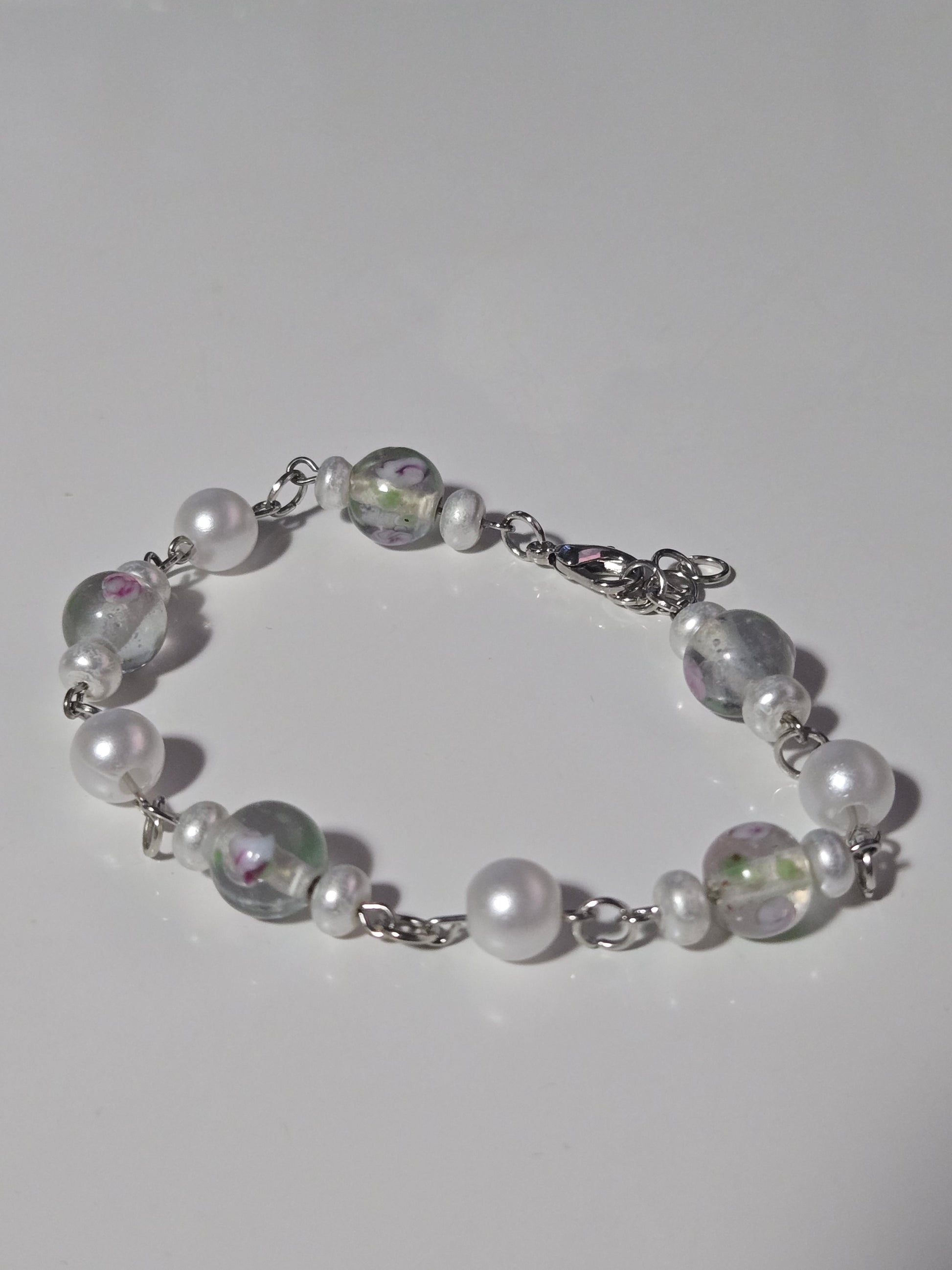 Glass Garden Bracelet – Pearl & Handcrafted Floral Bead Chain