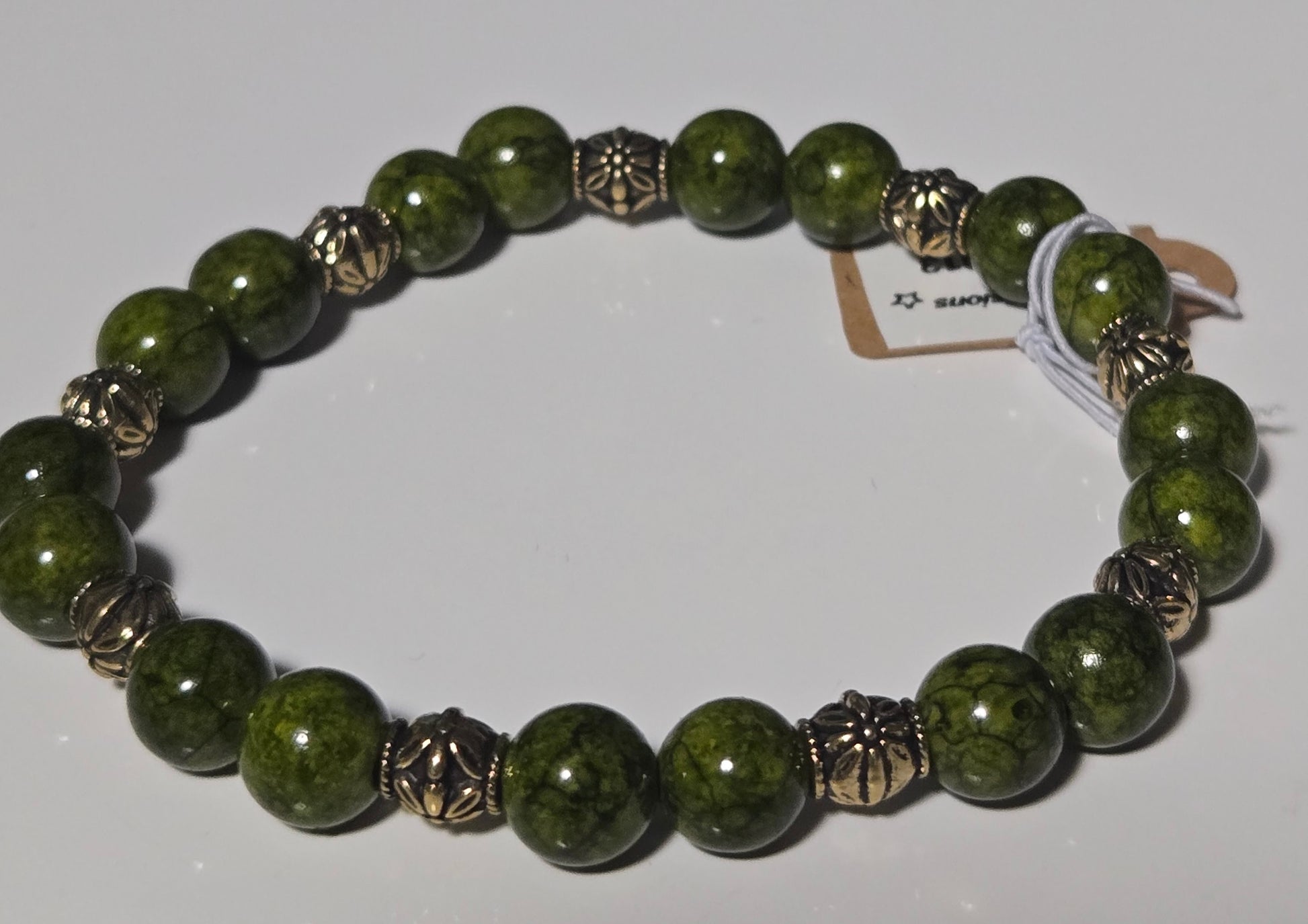 🌿green jasper bracelet, brass beaded bracelet, vintage gemstone jewelry, handmade earthy bracelet, moss green stone bracelet, boho vintage jewelry, Voi’s Visions bracelet, natural stone jewelry