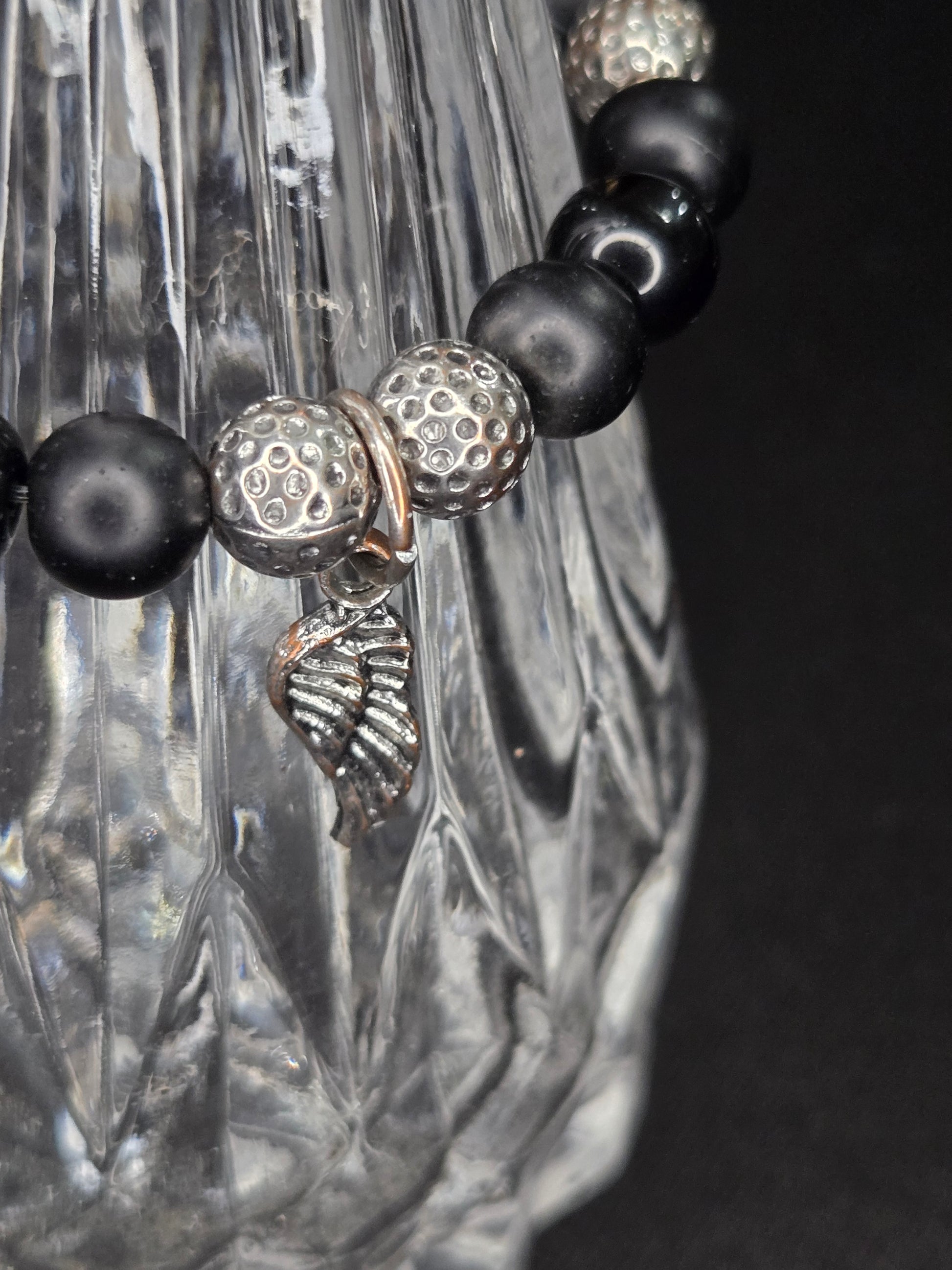The Obsidian Wing Bracelet embodies quiet strength and protection. Matte black beads meet silver-toned spheres etched with subtle texture, centered around a single wing charm—symbolizing resilience, transformation, and the freedom to rise again.